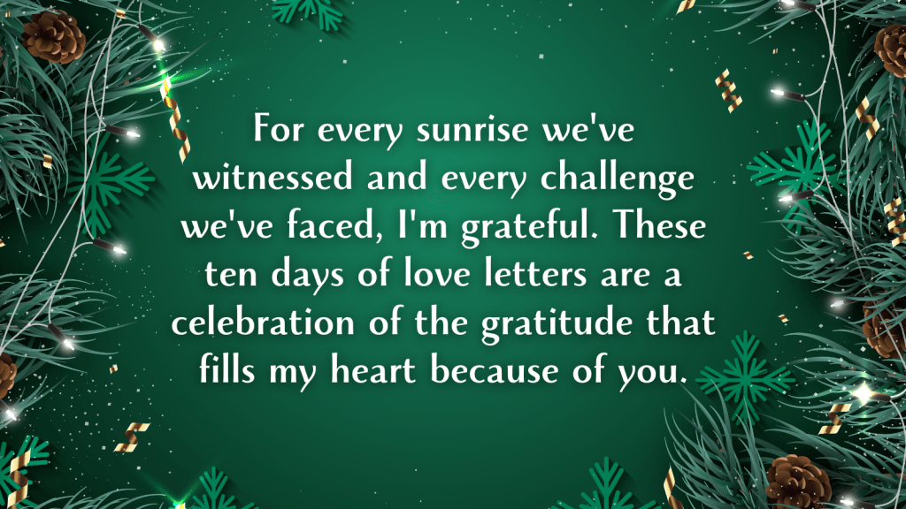 For every sunrise we’ve witnessed and every challenge we’ve faced, I’m grateful. These ten days of love letters are a celebration of the gratitude that fills my heart because of you.