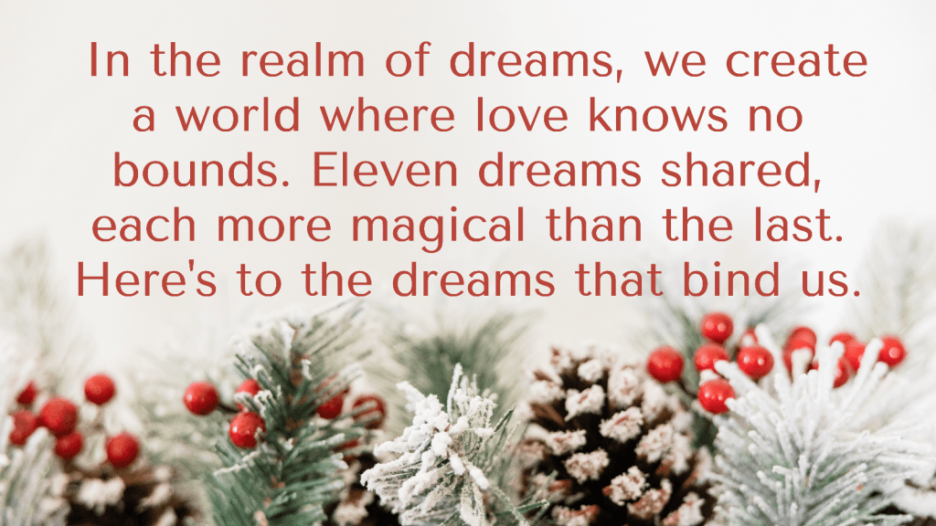 In the realm of dreams, we create a world where love knows no bounds. Eleven dreams shared, each more magical than the last. Here’s to the dreams that bind us.