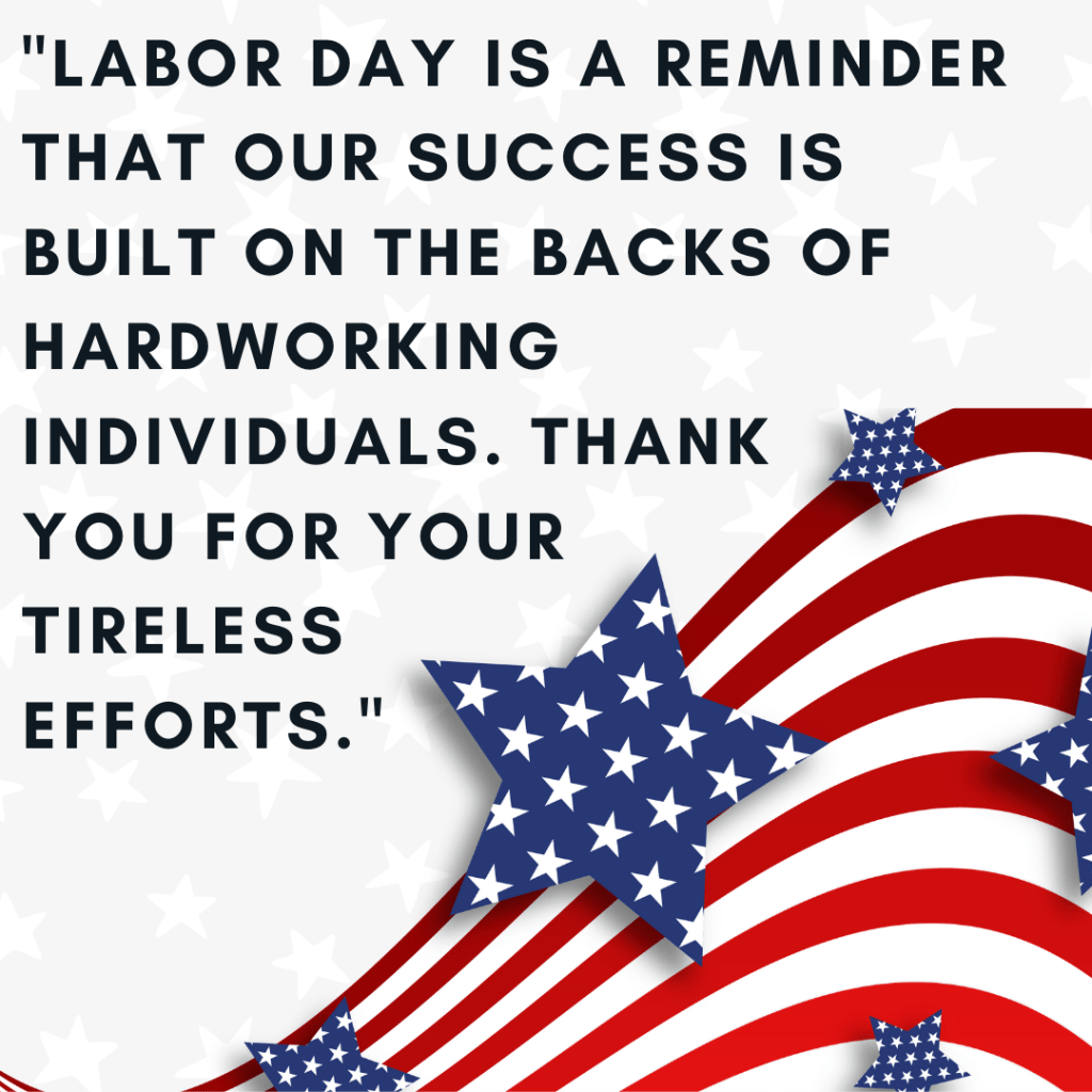 - “Labor Day is a reminder that our success is built on the backs of hardworking individuals. Thank you for your tireless efforts.”