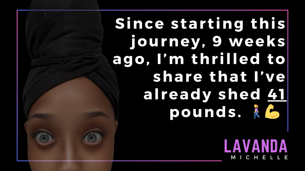 Hello everyone, Lavanda Michelle here, and I’m super excited to share my Week 9 health journey update with you all. Your ongoing support has been nothing short of amazing, and I couldn’t have made it this far without you! When I started this journey, I was hesitant to share it, but now I’m so glad I did. The positivity and encouragement I’ve received from this community have truly made a difference.