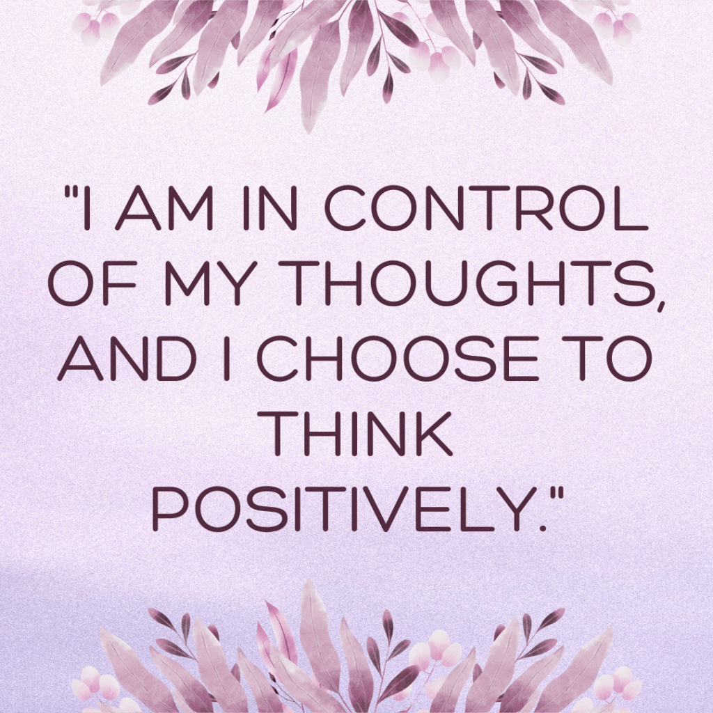 “I am in control of my thoughts, and I choose to think positively.”