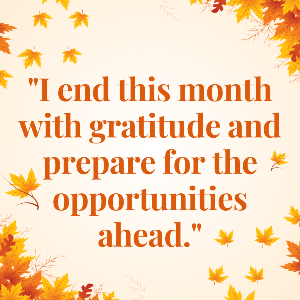 Conclude October with gratitude and readiness for what November will bring.
