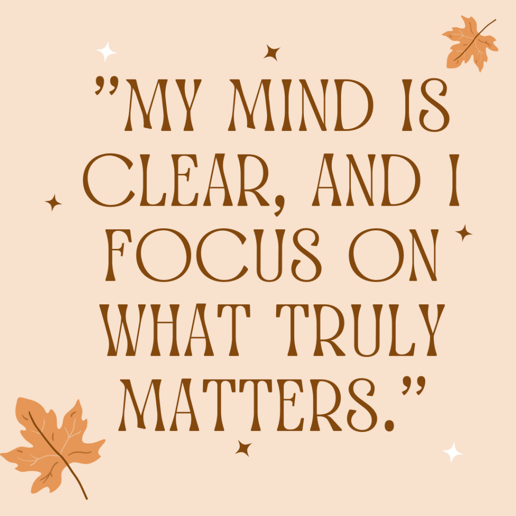 “My mind is clear, and I focus on what truly matters.”
