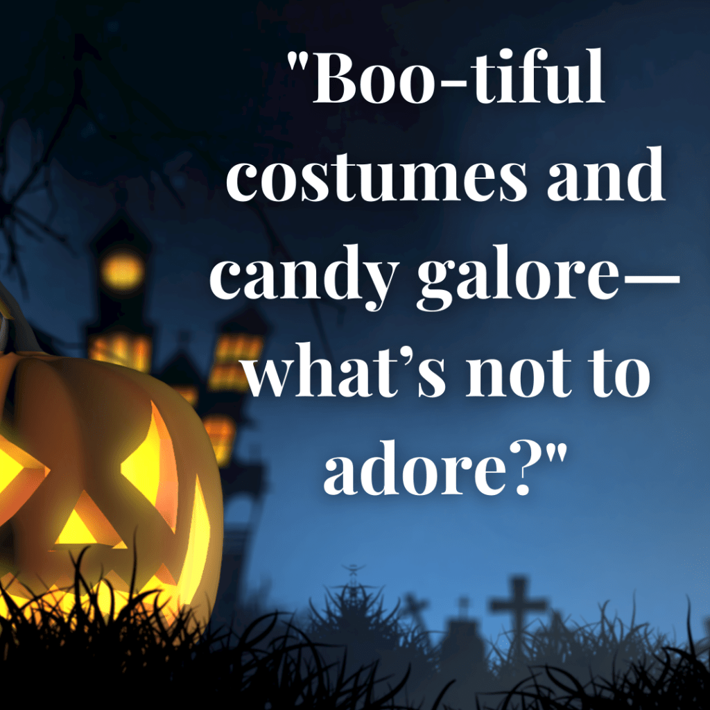 - “Boo-tiful costumes and candy galore—what’s not to adore?”