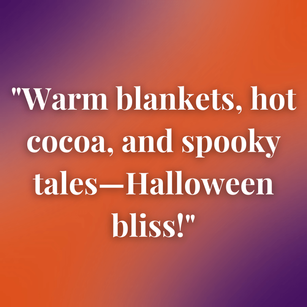 - “Warm blankets, hot cocoa, and spooky tales—Halloween bliss!”