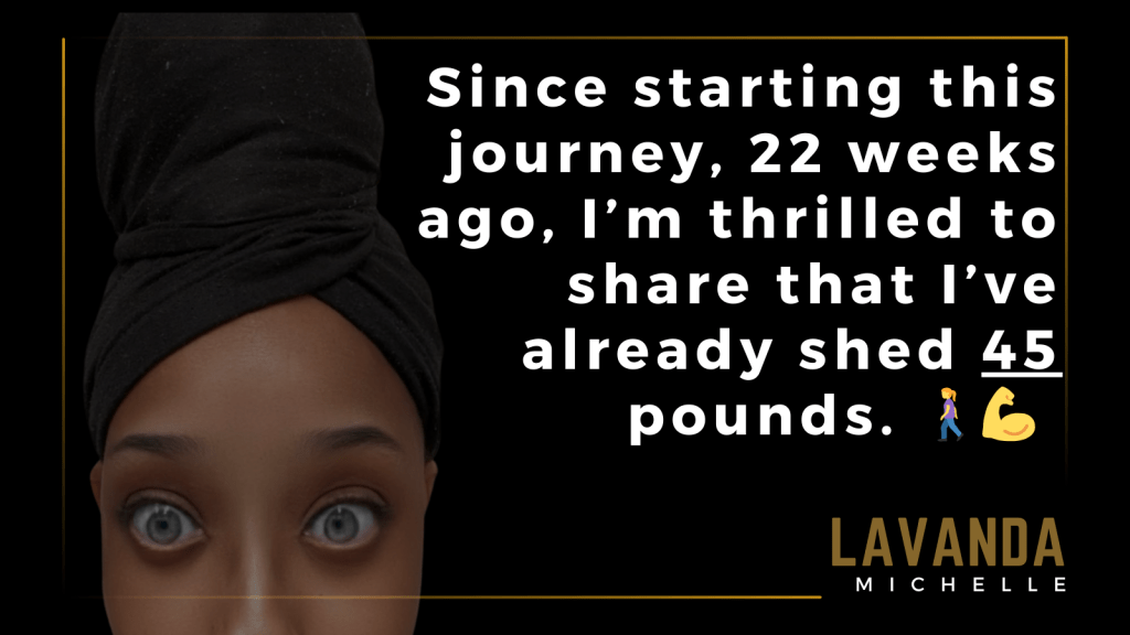 - Progress: I’ve lost 45 pounds in less than six months—far surpassing my initial goal of 25 pounds by Week 25.