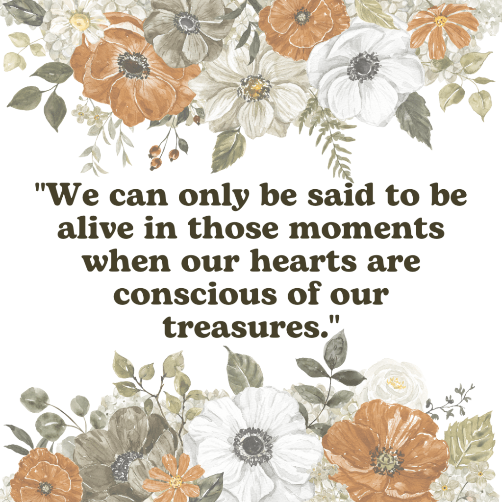 - “We can only be said to be alive in those moments when our hearts are conscious of our treasures.” – Thornton Wilder