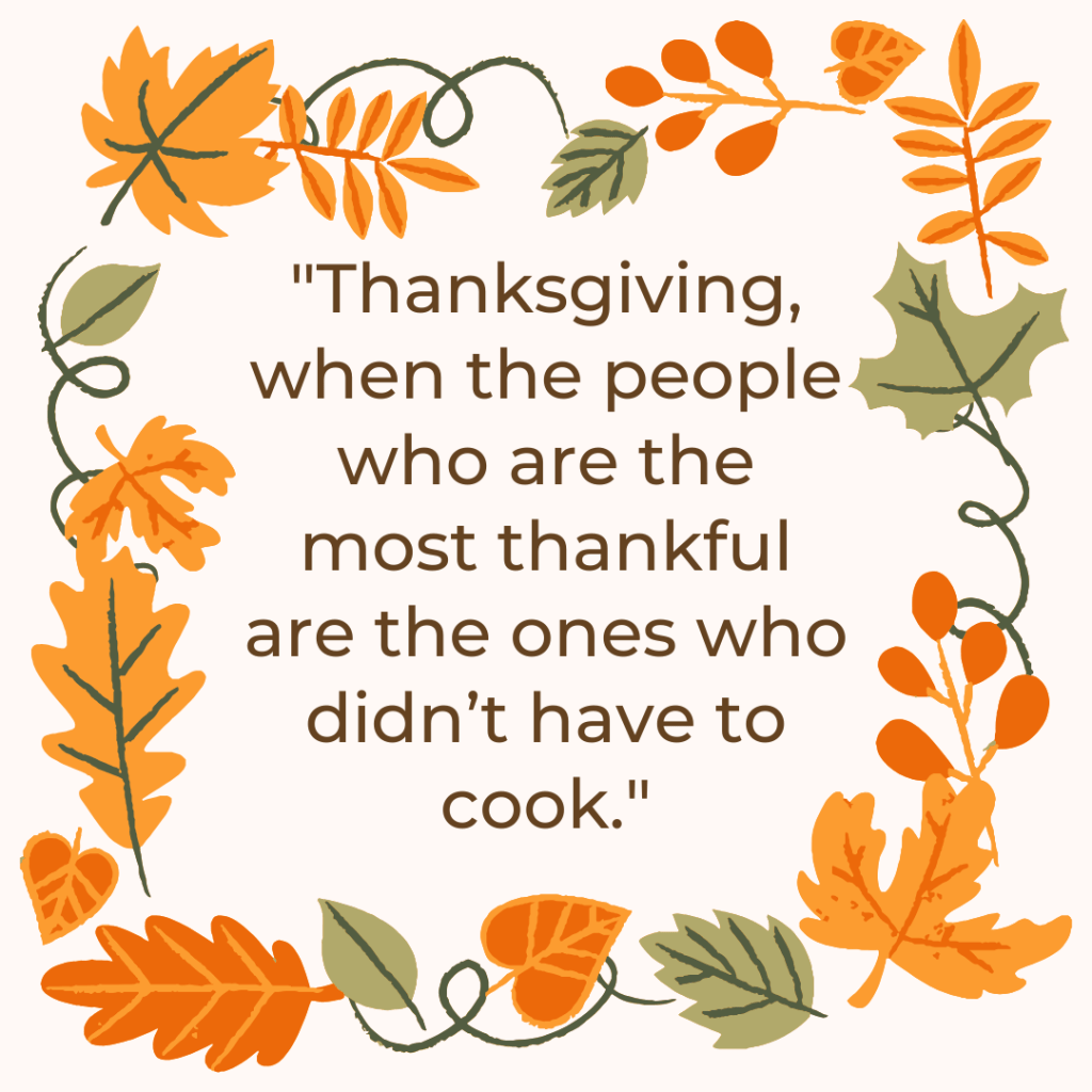 - “Thanksgiving—when the people who are the most thankful are the ones who didn’t have to cook.” – Anonymous
