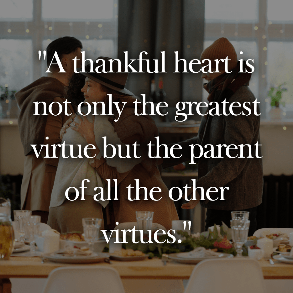 - “A thankful heart is not only the greatest virtue but the parent of all the other virtues.” – Cicero