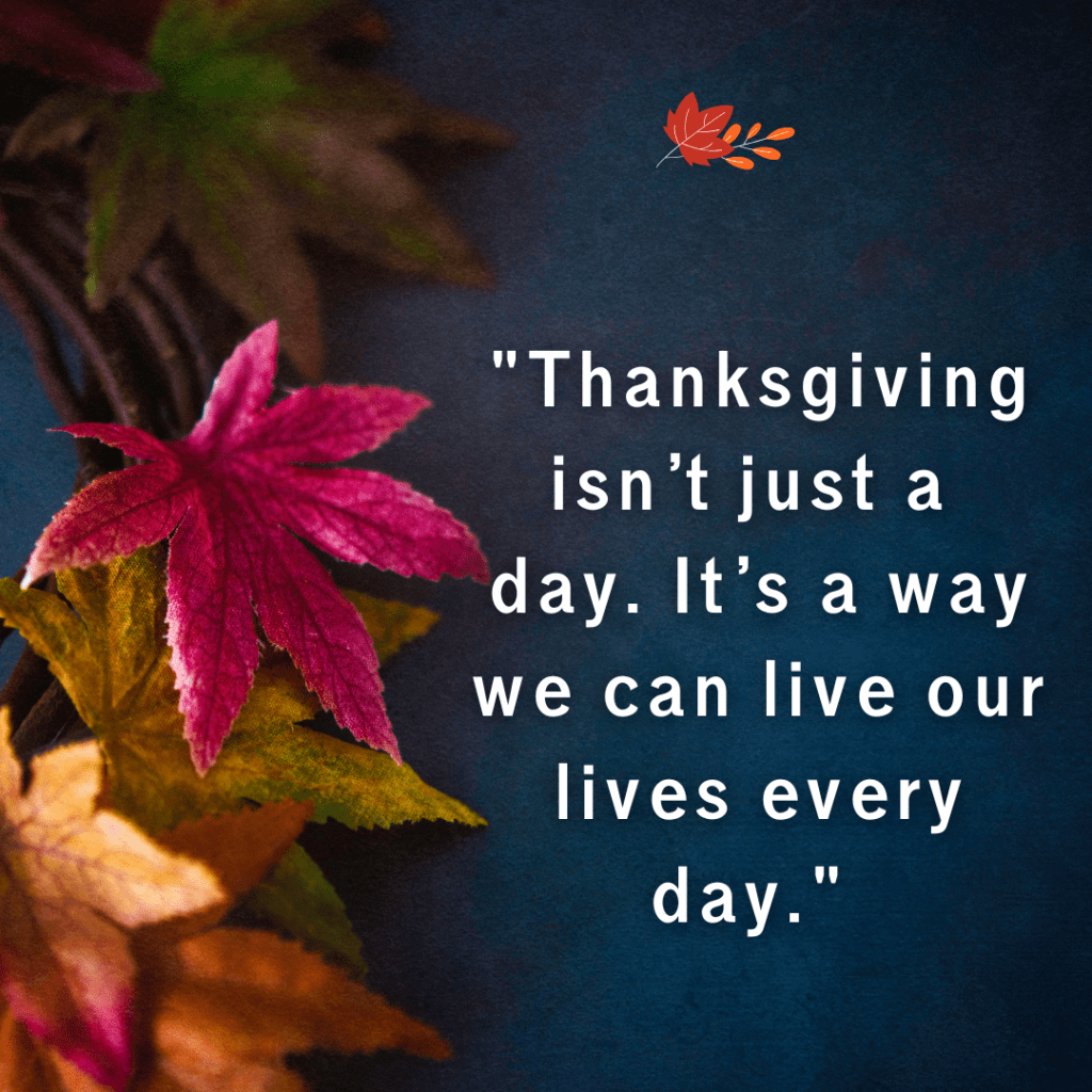 - “Thanksgiving isn’t just a day. It’s a way we can live our lives every day.” – Katrina Mayer