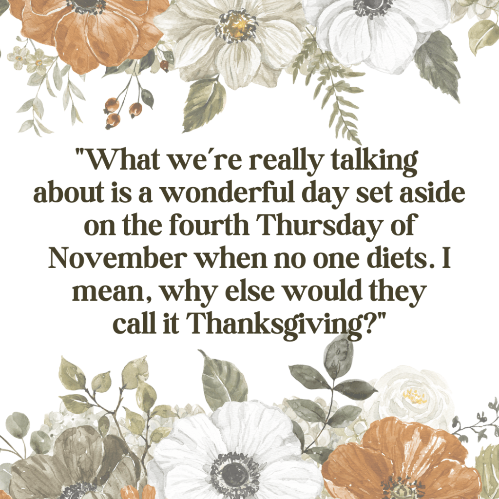 - “What we’re really talking about is a wonderful day set aside on the fourth Thursday of November when no one diets. I mean, why else would they call it Thanksgiving?” – Erma Bombeck