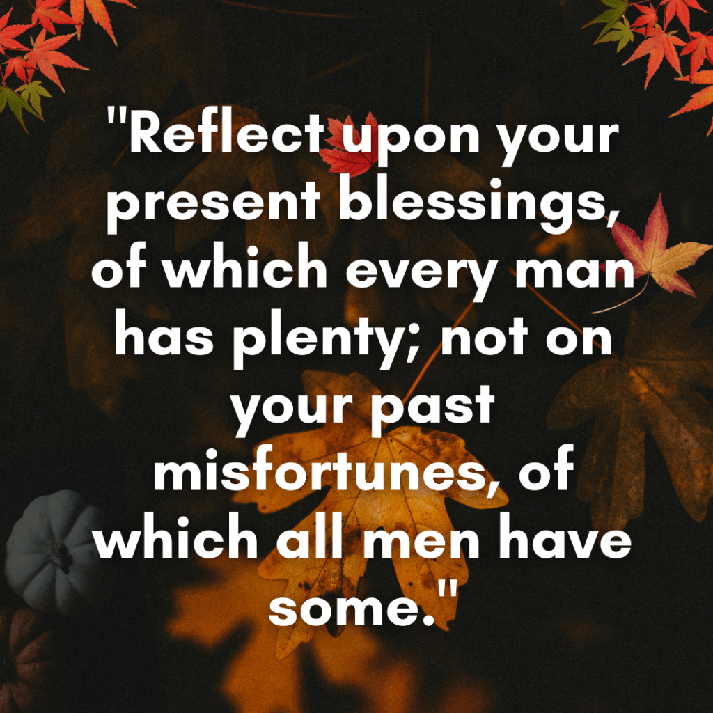 - “Reflect upon your present blessings, of which every man has plenty; not on your past misfortunes, of which all men have some.” – Charles Dickens