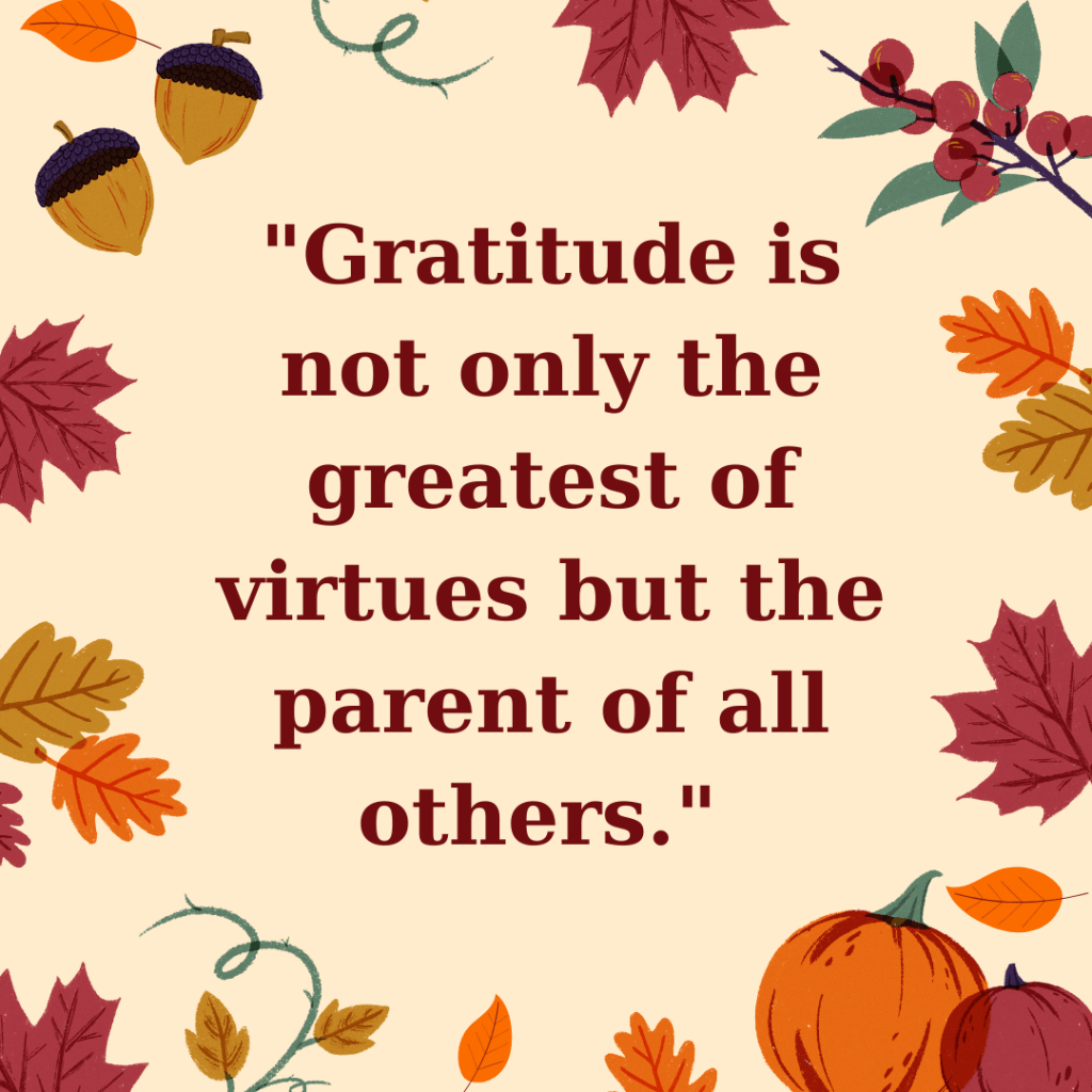 - “Gratitude is not only the greatest of virtues but the parent of all others.” – Cicero