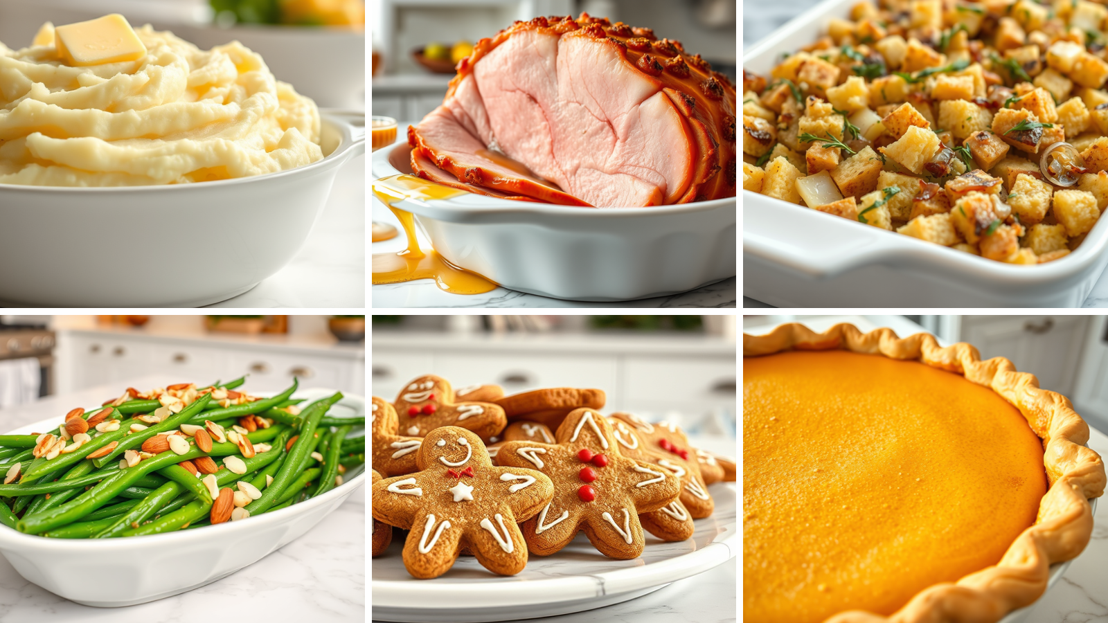 A sweet and savory glazed ham, coated with honey, brown sugar, and mustard, then roasted to perfection. - Sausage and Apple Stuffing