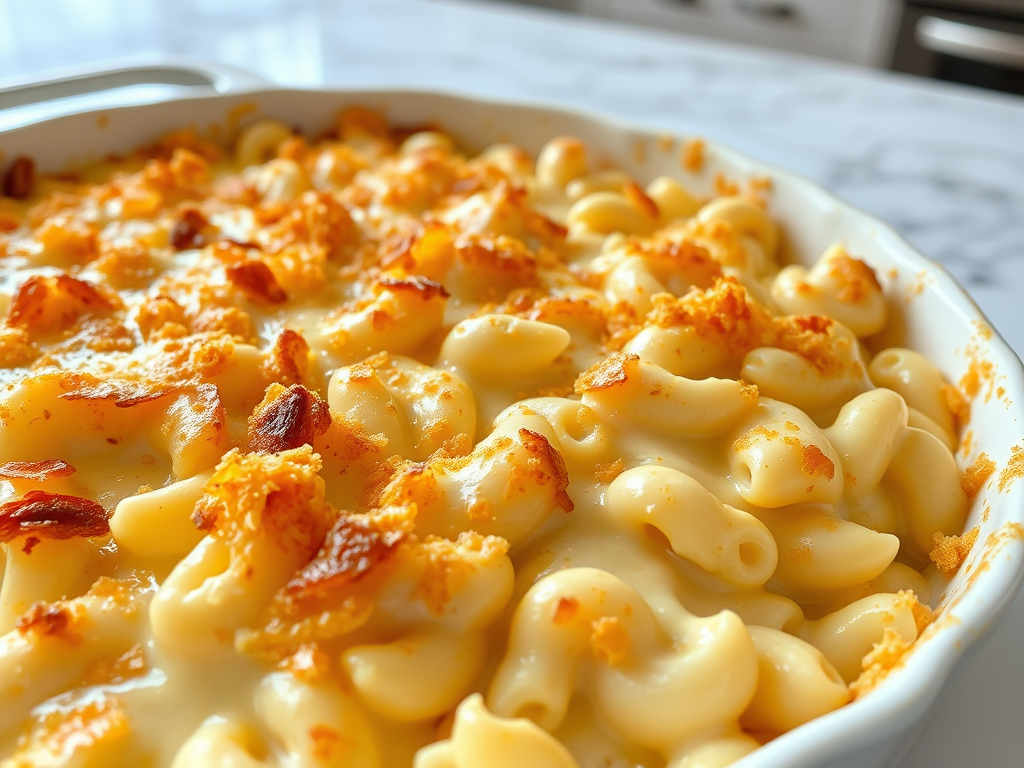 A creamy and cheesy baked mac and cheese with a golden, crispy topping. A comfort food favorite! - Pigs in Blankets