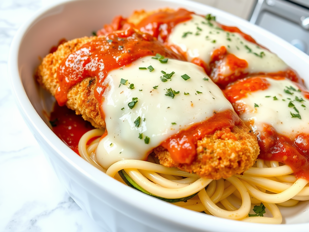 Breaded chicken topped with marinara sauce and melted mozzarella, served with zucchini noodles for a low-carb twist on a classic dish. - Keto Beef Wellington