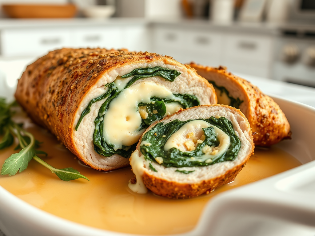 Pork tenderloin stuffed with a flavorful mixture of cheese, spinach, and herbs, roasted to perfection. - Keto Ham with Dijon and Herb Glaze