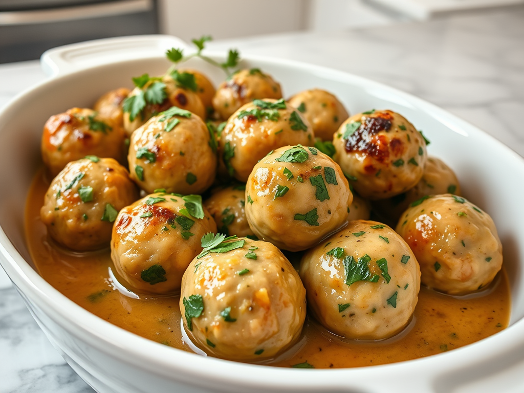 Turkey meatballs served with a rich garlic herb sauce, perfect for a low-carb dinner or appetizer. - Keto Stuffed Pork Tenderloin