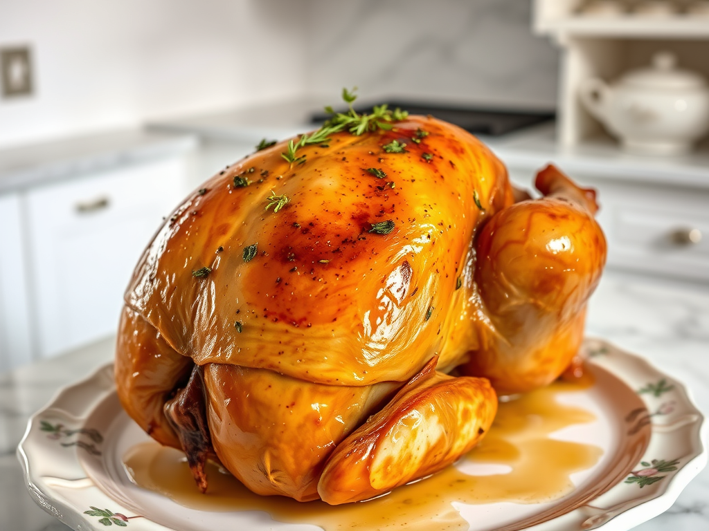 A perfectly roasted chicken with herbs and butter, seasoned to make a flavorful and juicy dish. - Keto Pork Belly with Crackling