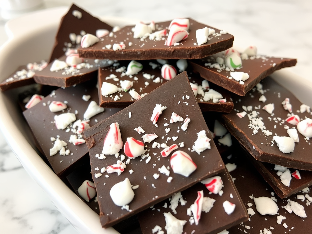 A combination of white and dark chocolate with crushed peppermint, creating a simple yet elegant treat. - Eggnog Custard