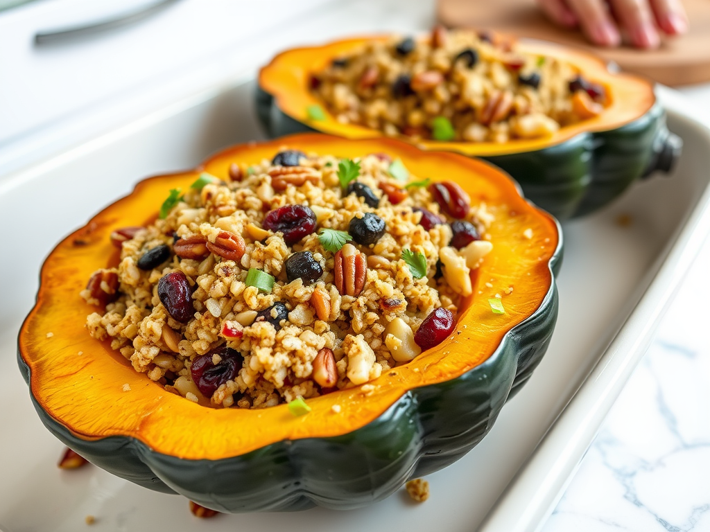 A creamy soup made with roasted butternut squash, coconut milk, and a touch of ginger for warmth and spice. - Vegan Stuffing with Mushrooms