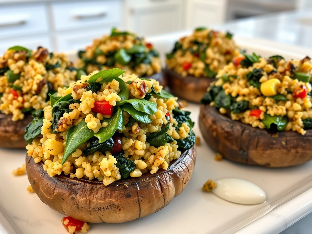 Mushrooms filled with spinach and melted cheese, then baked until golden and bubbling. - Keto Collard Greens