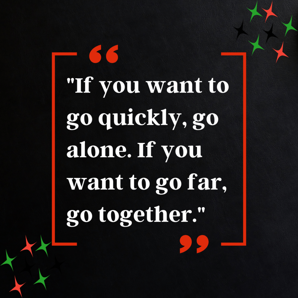 - “If you want to go quickly, go alone. If you want to go far, go together.” – African Proverb