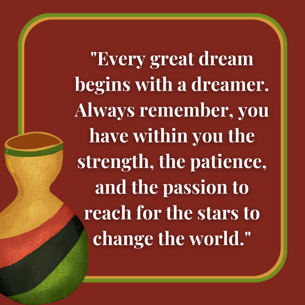 - “Every great dream begins with a dreamer. Always remember, you have within you the strength, the patience, and the passion to reach for the stars to change the world.” – Harriet Tubman