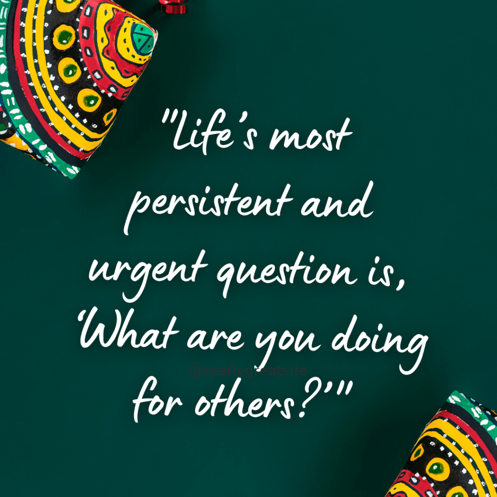 - “Life’s most persistent and urgent question is, ‘What are you doing for others?’” – Martin Luther King Jr.
