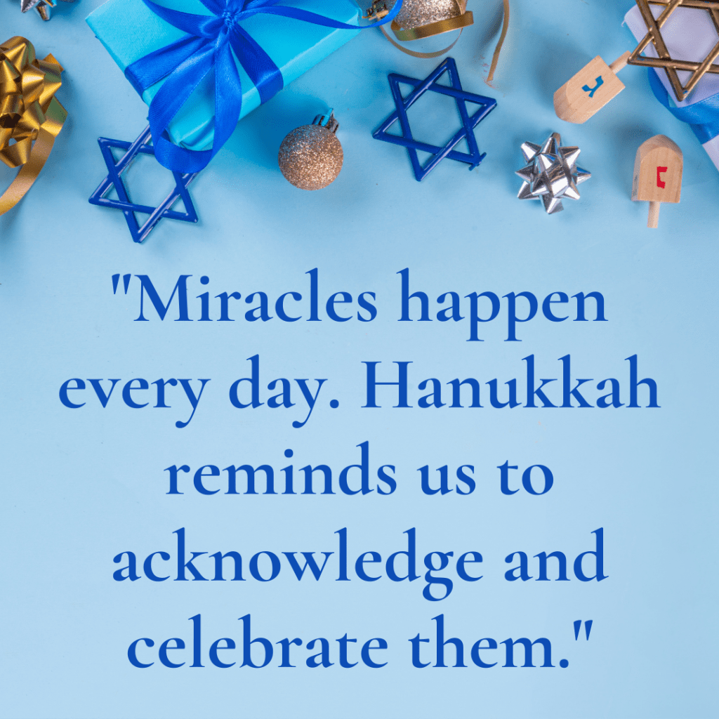 - “Miracles happen every day. Hanukkah reminds us to acknowledge and celebrate them.”