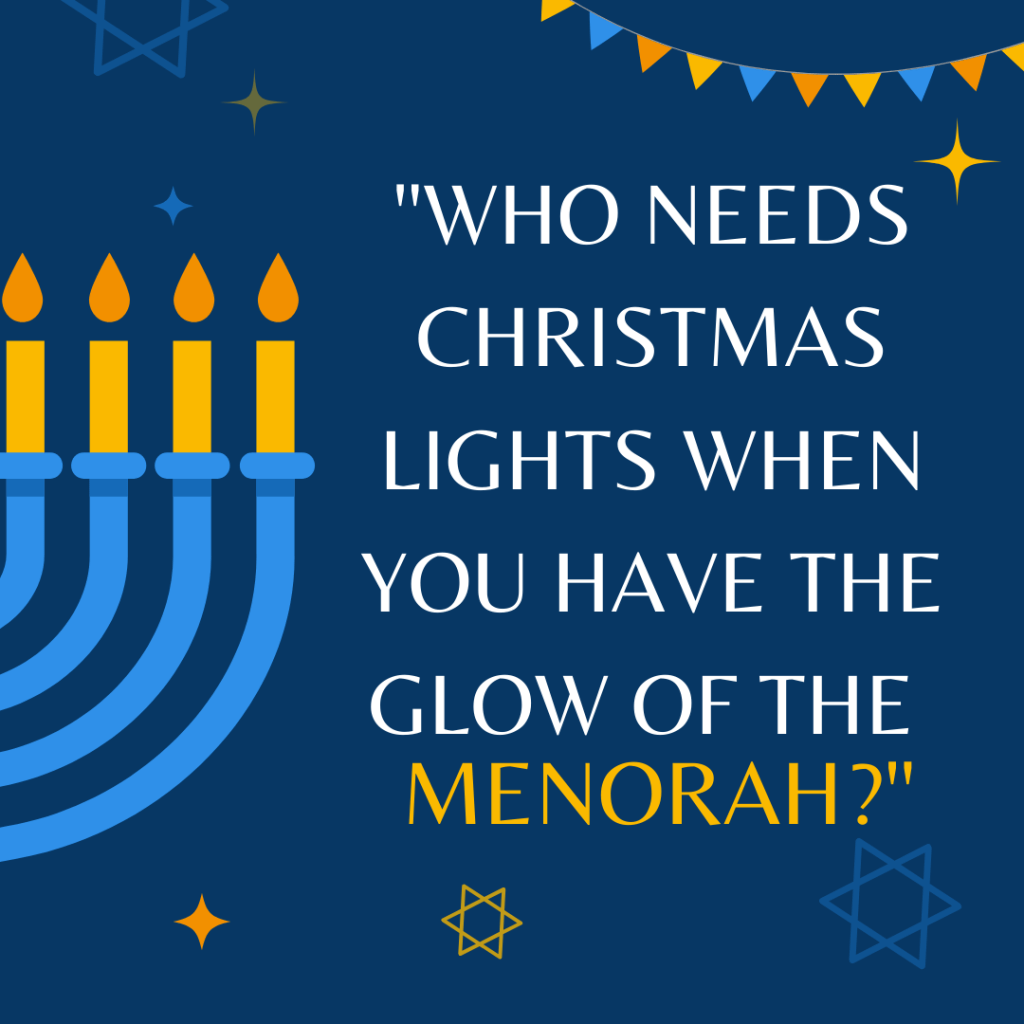 - “Who needs Christmas lights when you have the glow of the menorah?”