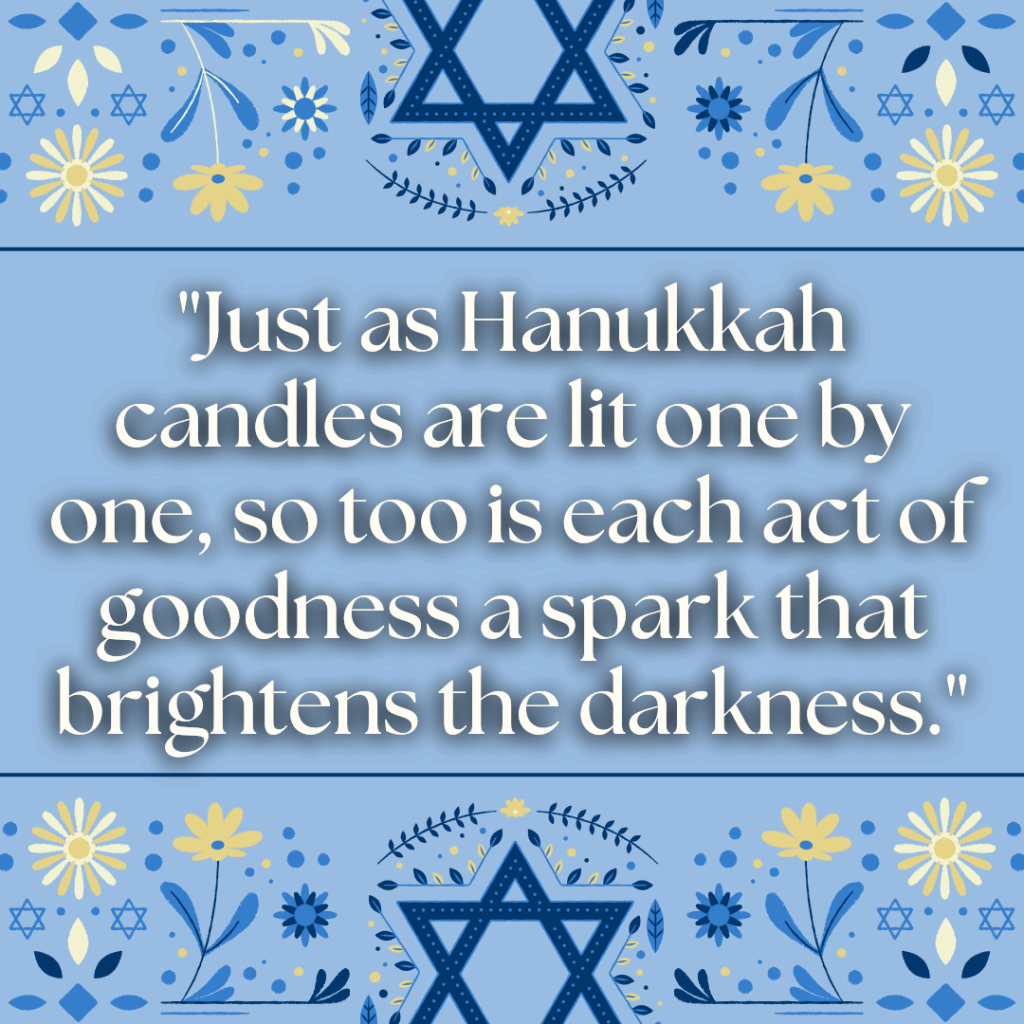 - “Just as Hanukkah candles are lit one by one, so too is each act of goodness a spark that brightens the darkness.”