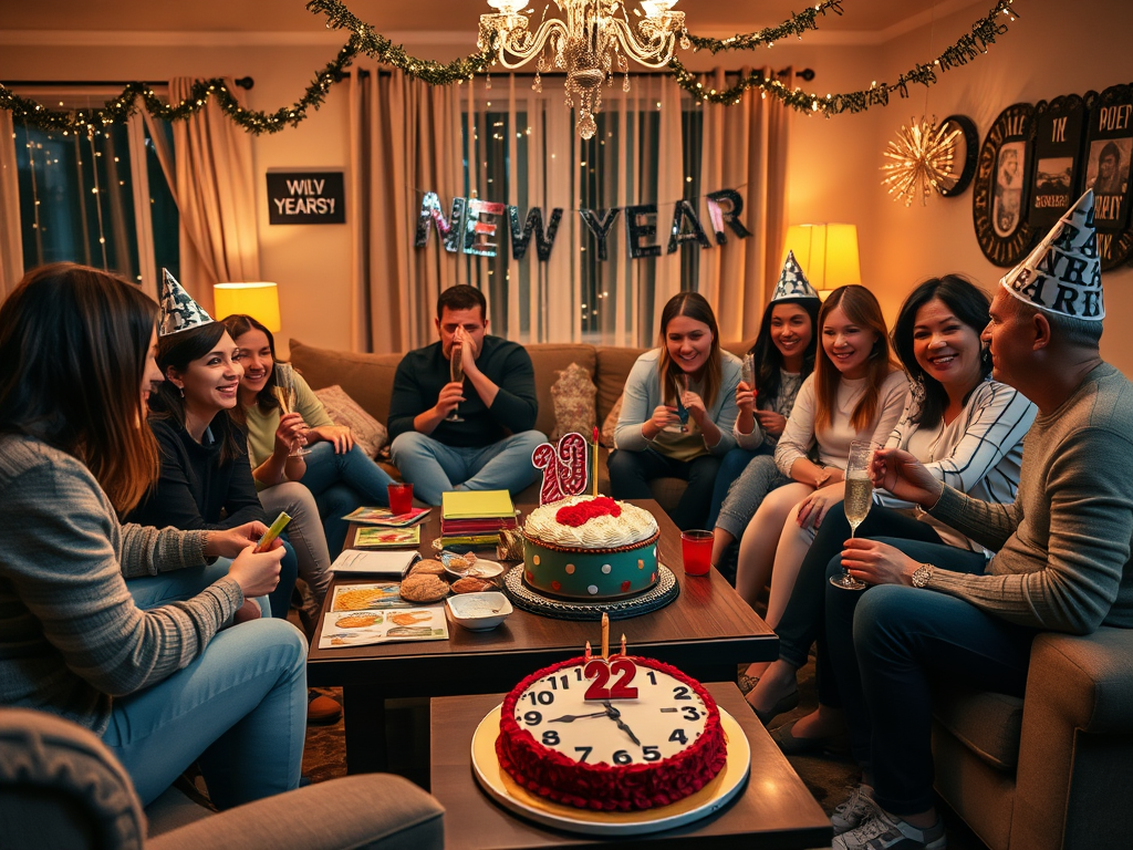 Turn your New Year’s Eve into a game night, featuring board games, trivia, or charades. Pause at 11:50 PM to prepare for the countdown and toast at midnight.
