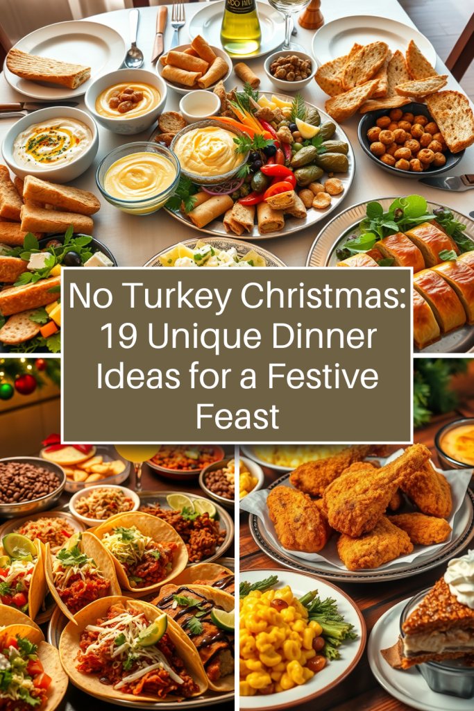 🎄 No turkey this Christmas? No problem! 🍕🌮 Explore 19 unique dinner ideas, from pizza parties to Mexican feasts, and make your holiday meal unforgettable. #ChristmasDinner #NoTurkey #HolidayFeast