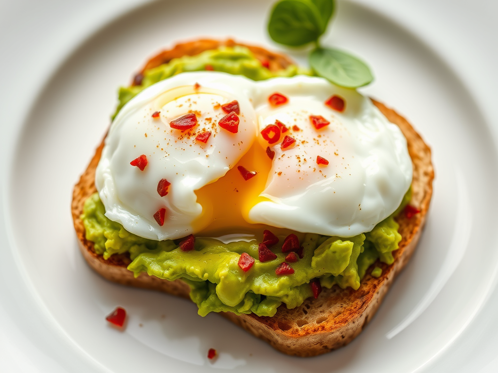 For a healthier option that’s still a showstopper, spread mashed avocado on toasted sourdough bread and top with a perfectly poached egg. Sprinkle with chili flakes, a dash of olive oil, and a pinch of salt for a simple yet satisfying dish that’s Instagram-worthy.