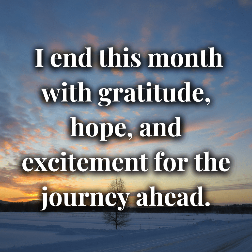 - January 31: I end this month with gratitude, hope, and excitement for the journey ahead.