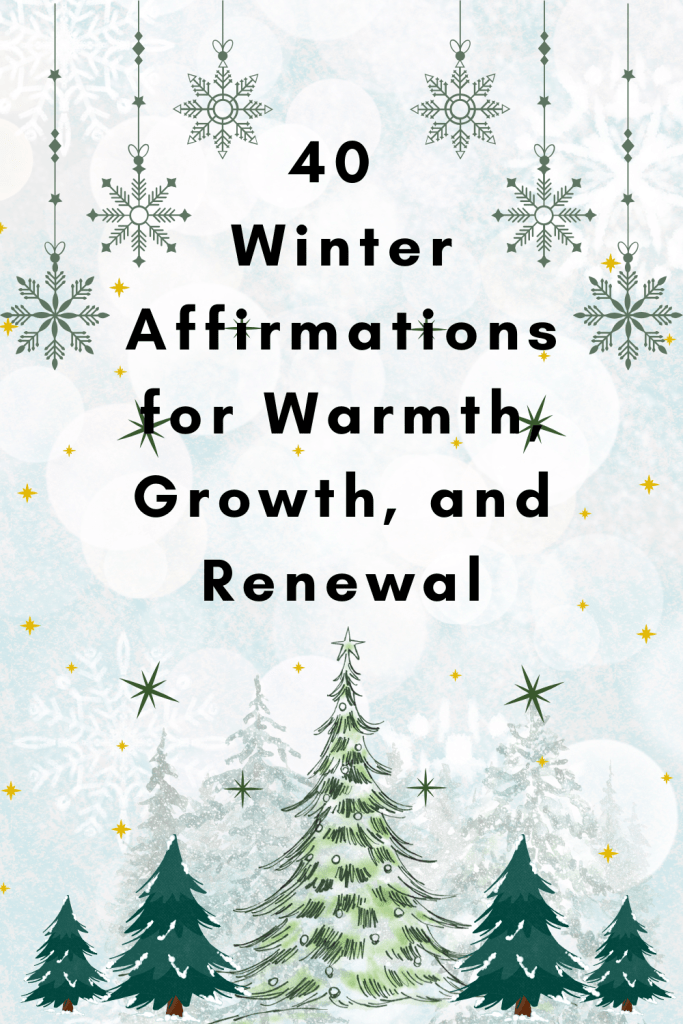 Warm your heart and soul this winter with 40 affirmations for growth, self-care, and peace. Embrace the season’s stillness and find renewal. ❄️ #WinterAffirmations #SelfCare #Growth #Peace #Mindfulness #WinterWellness #PositiveThinking