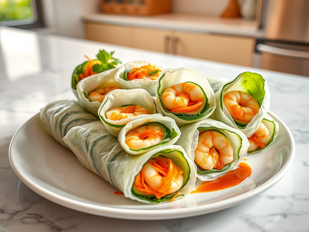 Pro Tip: Soften rice paper in warm water for easy rolling.