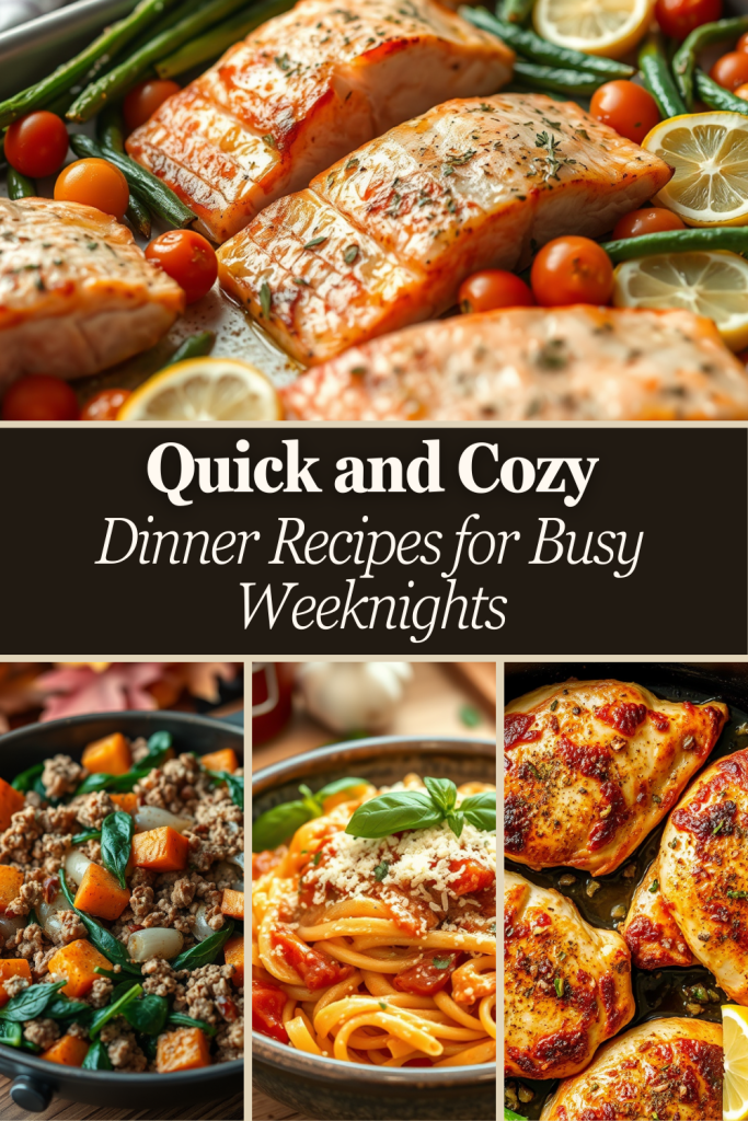 These quick and cozy dinner recipes prove that even the busiest weeknights can end with a satisfying meal. Whether you’re in the mood for a creamy pasta, hearty skillet, or sheet pan simplicity, these dishes have you covered. Try one tonight and enjoy the perfect balance of flavor and convenience!
