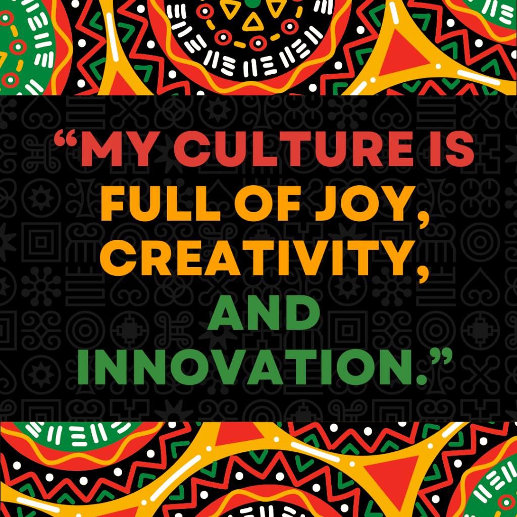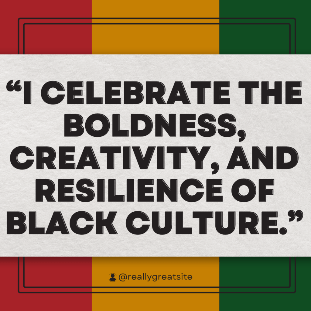 “I celebrate the boldness, creativity, and resilience of Black culture.”