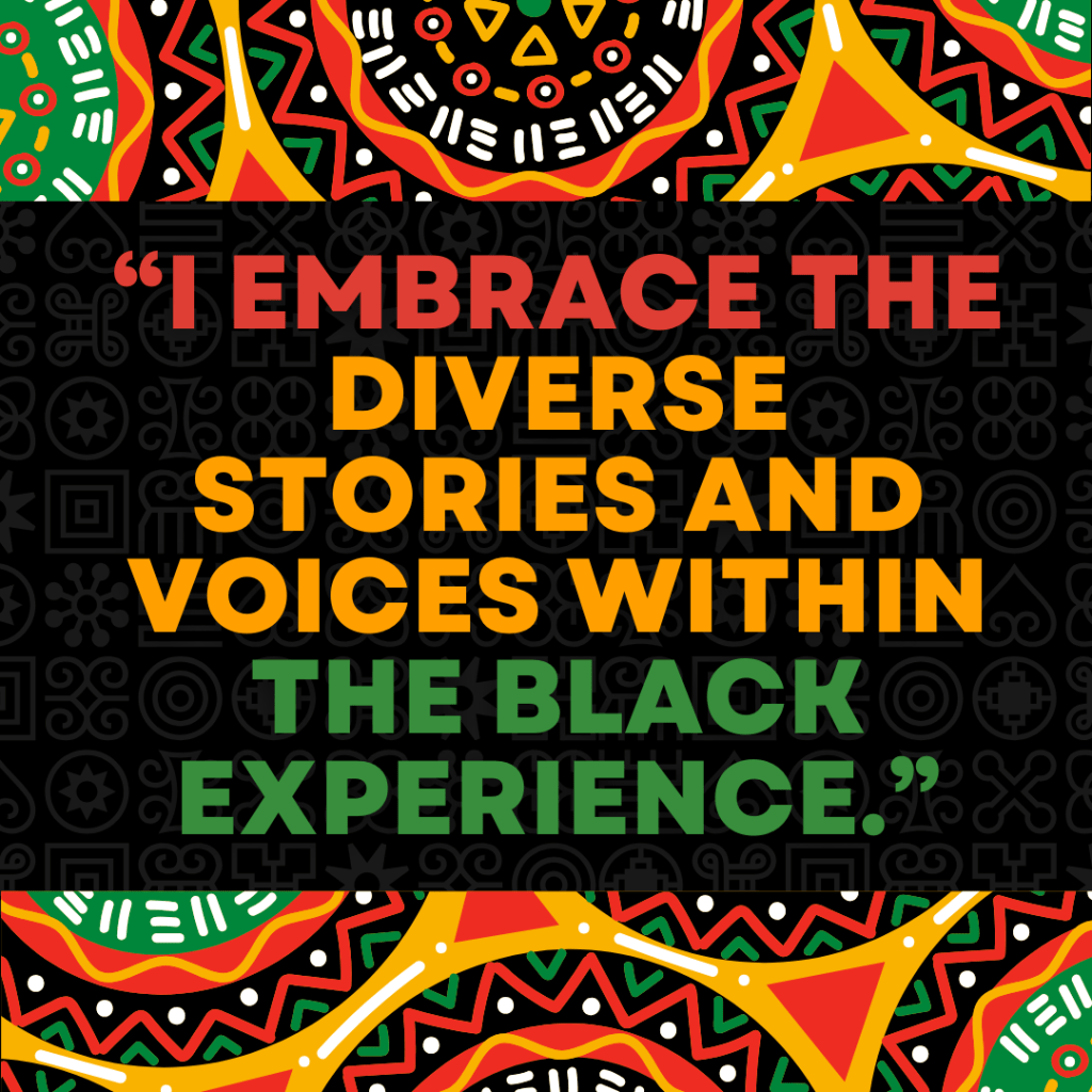 “I embrace the diverse stories and voices within the Black experience.”