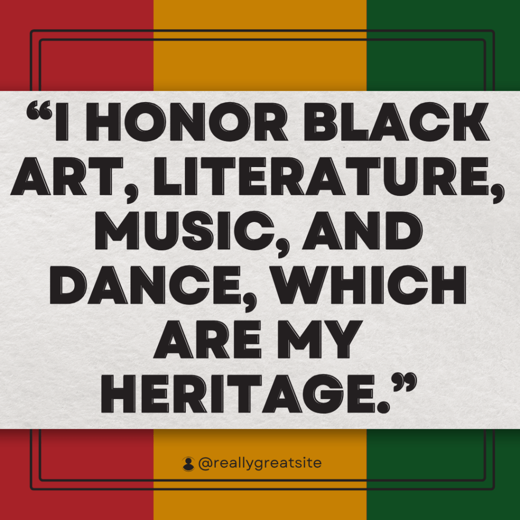 “I honor Black art, literature, music, and dance, which are my heritage.”