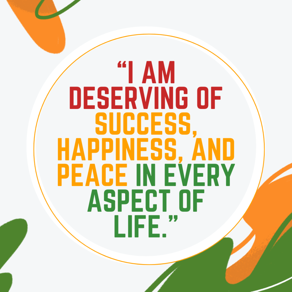 “I am deserving of success, happiness, and peace in every aspect of life.”