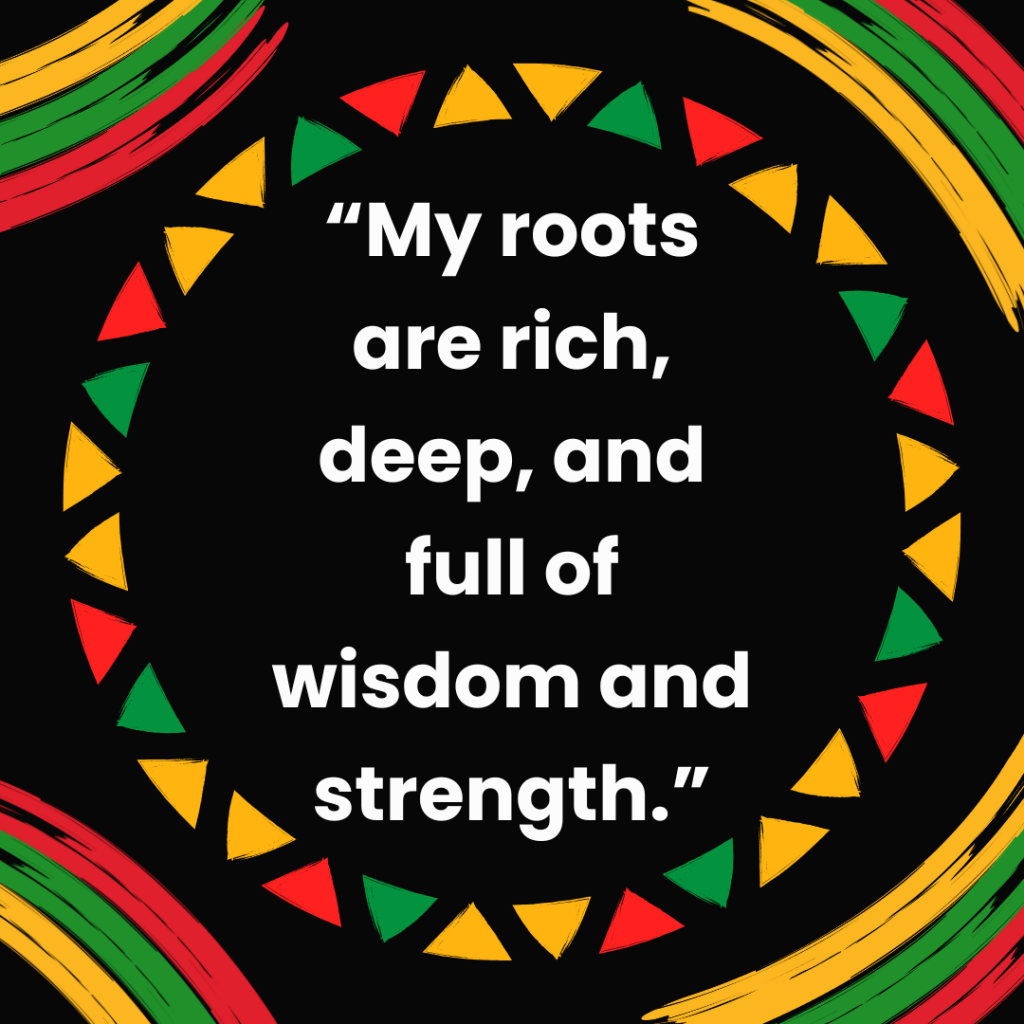 “My roots are rich, deep, and full of wisdom and strength.”