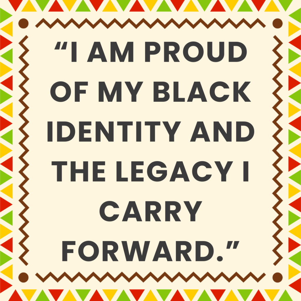 “I am proud of my Black identity and the legacy I carry forward.”