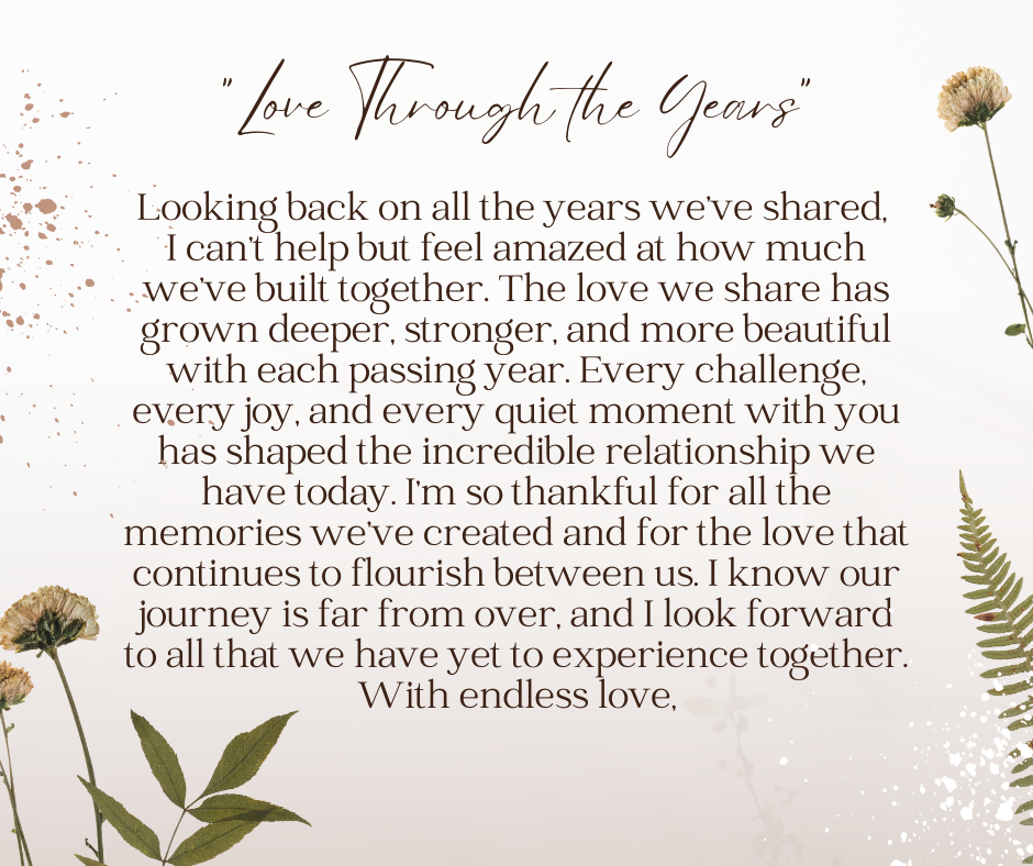 For couples who have been married for many years, this letter reflects on the journey you’ve taken together and the love that’s grown along the way.
