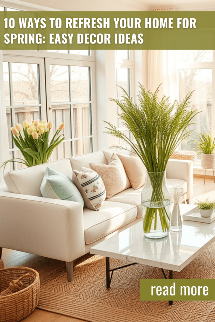 Spring is here! 🌸 Refresh your home with these 10 easy decor ideas, from bright colors to fresh plants and natural light. Your space will feel new and inviting! 🌿 #HomeDecor #SpringRefresh #InteriorDesign #SeasonalDeco