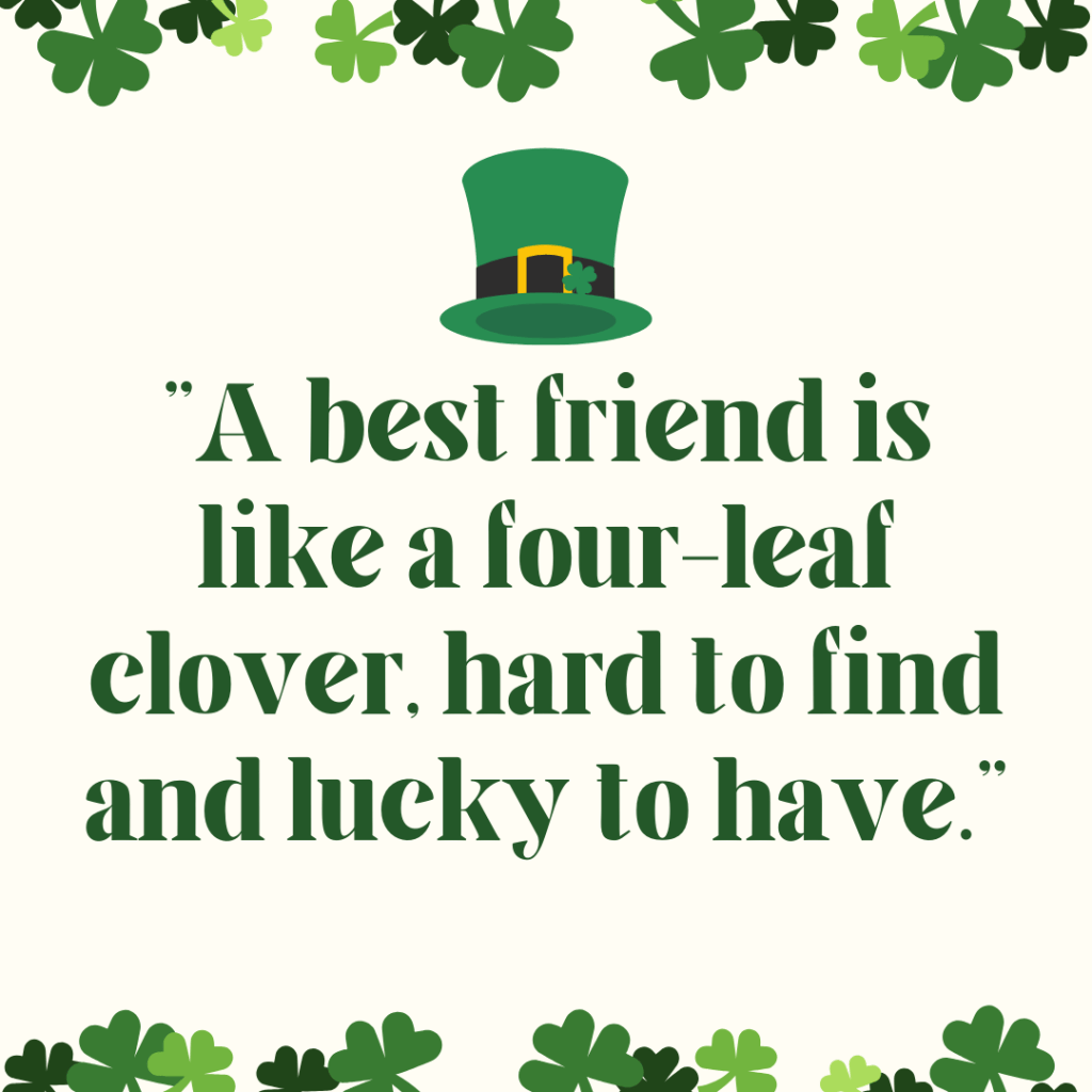 Friends are rare gems, just like four-leaf clovers. This quote celebrates the special, lucky bond between true friends on St. Patrick’s Day.