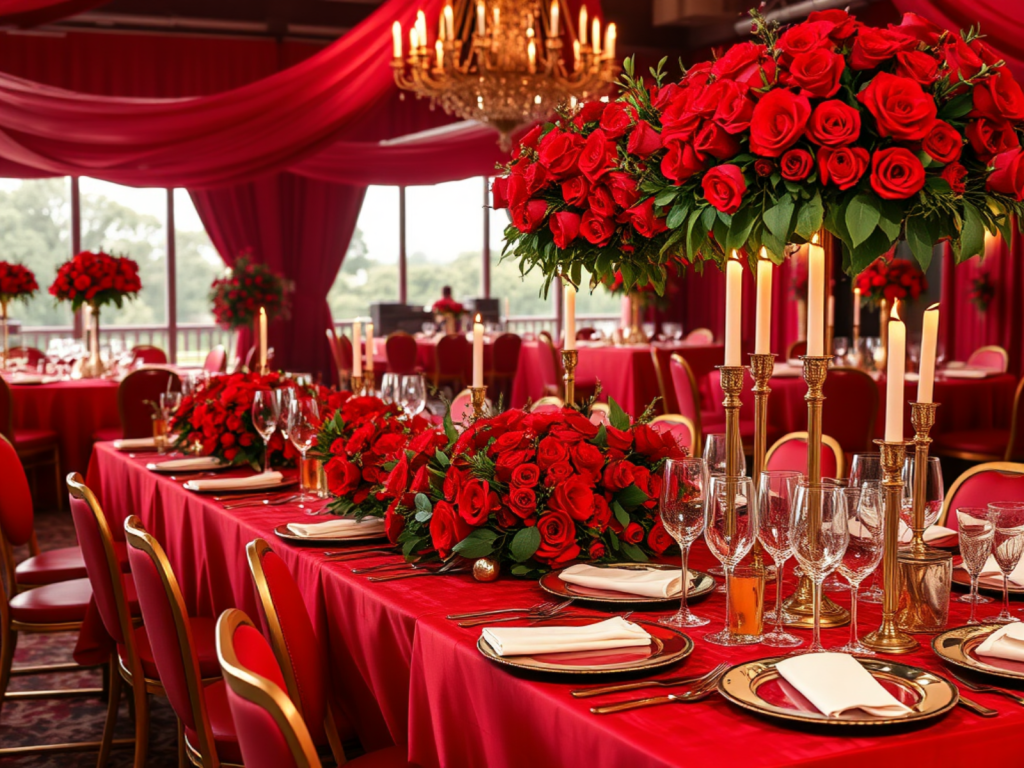 - Reception Decor: Red tablecloths, chairs, and florals can add warmth and excitement to your reception space.
