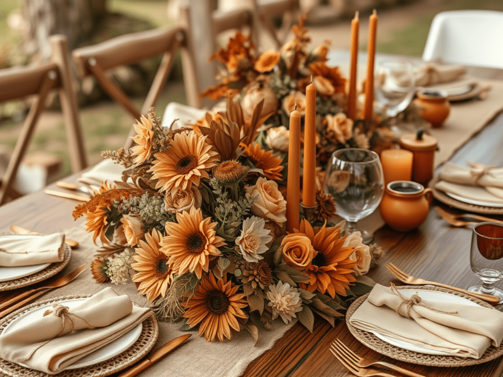 - Reception Details: Use wooden centerpieces, brown candles, and twine to create a cozy and natural ambiance.